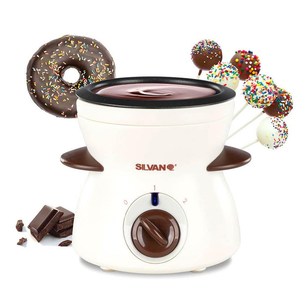 Selle mitmeotstarbelise elektrilise fondüü maht on 300 ml ja selle temperatuuri saab reguleerida (maksimaalselt 55–60 ºC). Sellel on üks nupp selle sisselülitamiseks, valige kahe temperatuuri seade vahel ja lülitage see välja, kui olete lõpetanud. See hoiab šokolaadi soojas ja suudab olenevalt valitud temperatuurist sulatada helmeid, väikseid ja suuri šokolaaditükke.