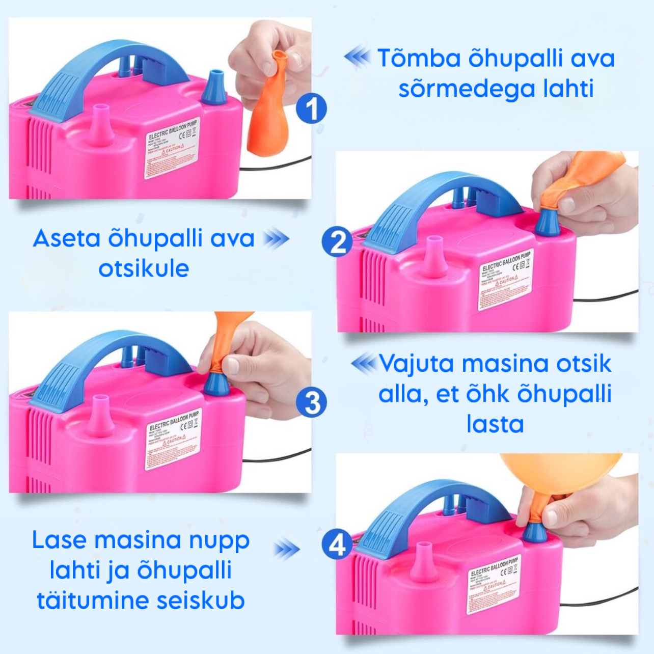 Kiire ja Lihtne Kasutamine: Elektriline õhupalli pump võimaldab kiiret ja lihtsat suure hulga õhupallide täitmist.