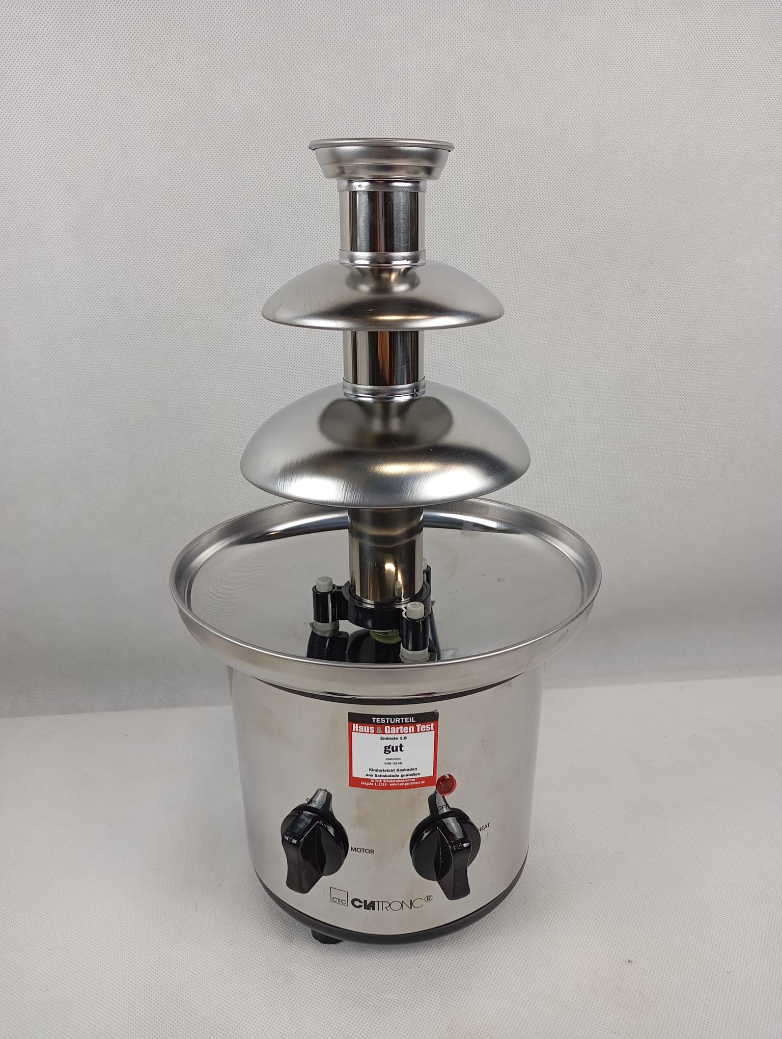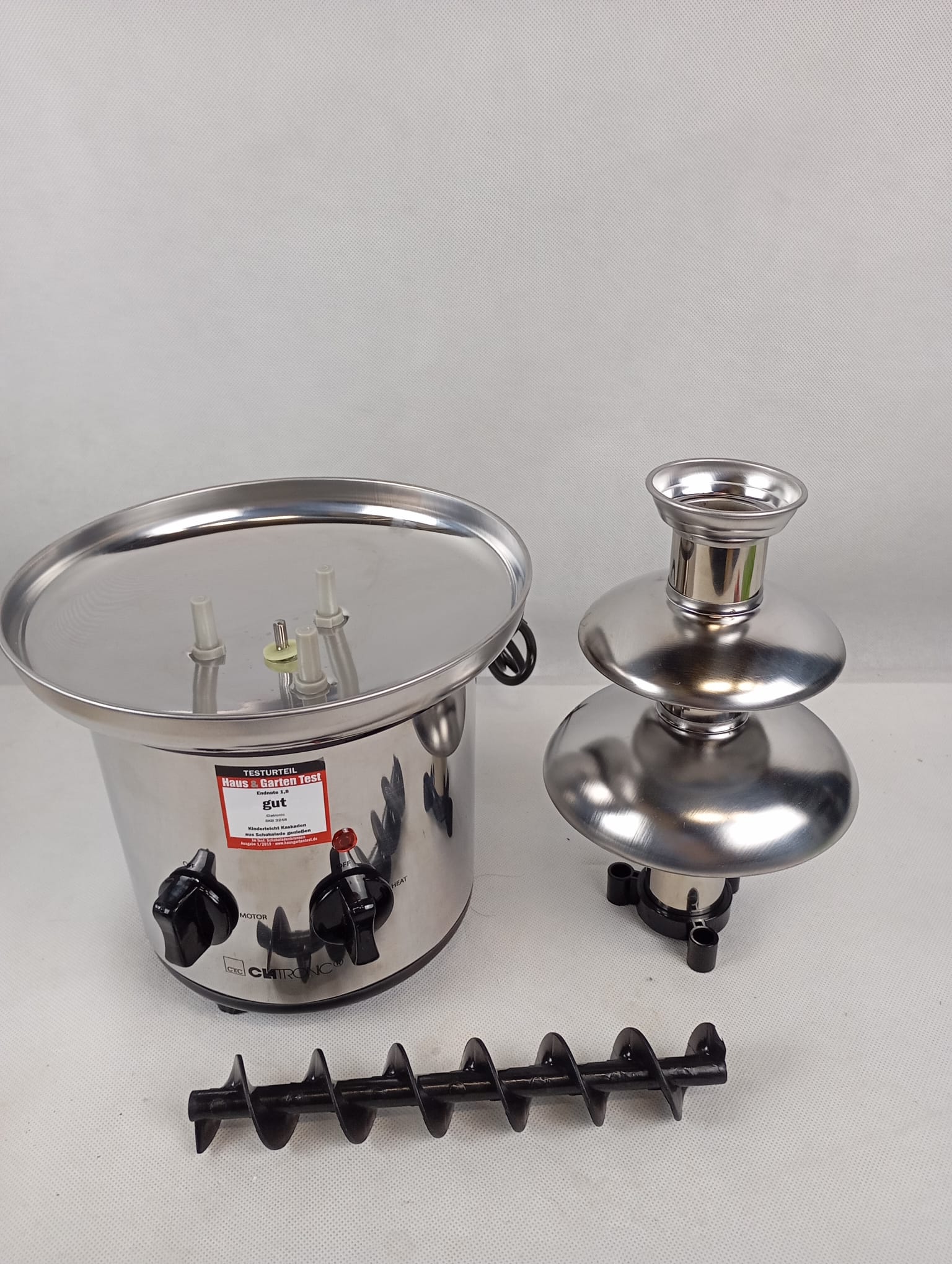 Šokolaadipurskkaev eksklusiivseks buffet-elamuseks, ideaalne erinevate puuviljade ja saiakeste kastmiseks. Varustatud eriti sujuvate jugadega parema voolavuse tagamiseks ja sügava kogumiskausiga pikaajaliseks šokolaadinaudinguks. Kuum šokolaad transporditakse kruvivõlli abil purskkaevu ülaossa ja voolab sealt pidevalt alla õrnade jugadena. Kõrguses reguleeritavad jalad tagavad ideaalselt tasakaalustatud šokolaadivoo.